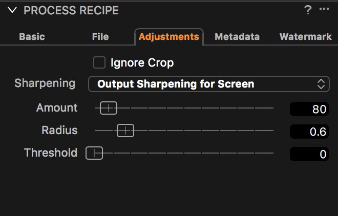 - output sharpening, which is applied when processing final output images, with specialised support for both screen and print destinations
