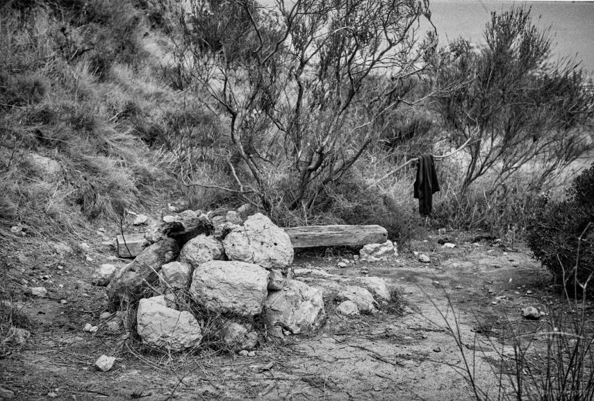 A seemingly abandoned camp site, on the side of the Monjuïc, Barcelona.