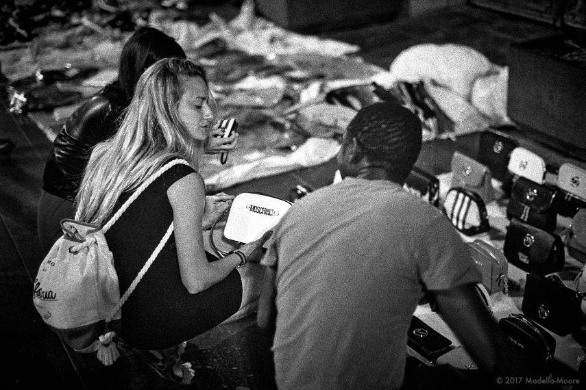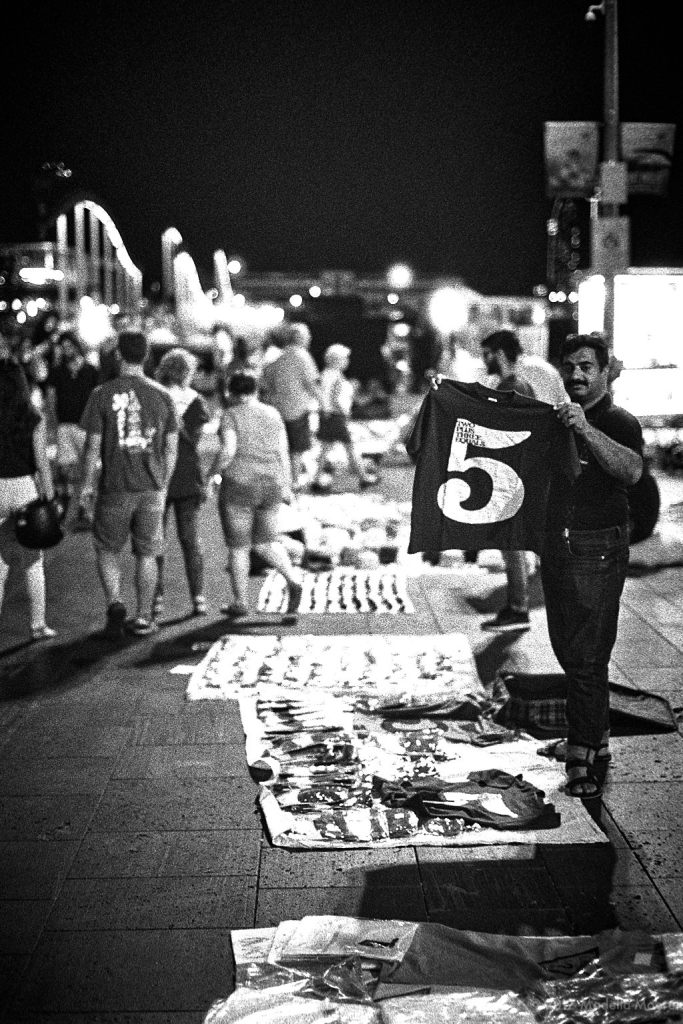 The second set of night-time street images taken in Barcelona and shot on high-ISO film. These are images of an illegal street market late at night (around 10pm) at the Rambla del Mar, at the harbour. The sellers are usually illegal immigrants, and most of the goods are fake clones of branded handbags, shoes, sunglasses and Barcelona FC shirts.