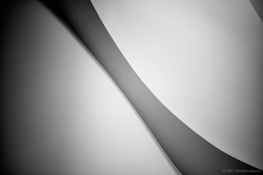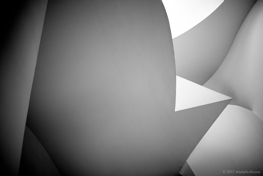 The building is mostly known for its titanium cladding and twisted intersecting forms. These photographs were taken of the structure inside, deliberately abstracted to exclude as much texture and detail as possible to give an impression of the forms used.