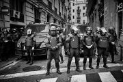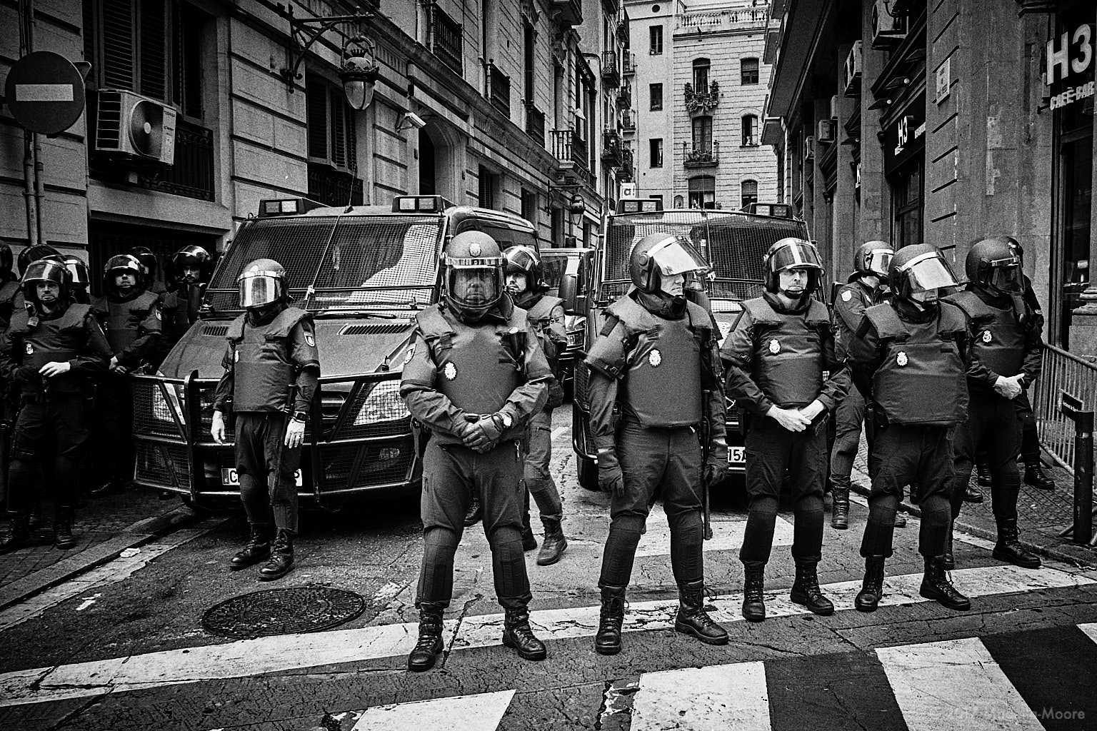 ‘Riot police, Barcelona. It is impossible to walk anywhere in the city without encountering sights such as this at the moment.’