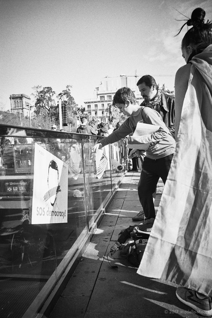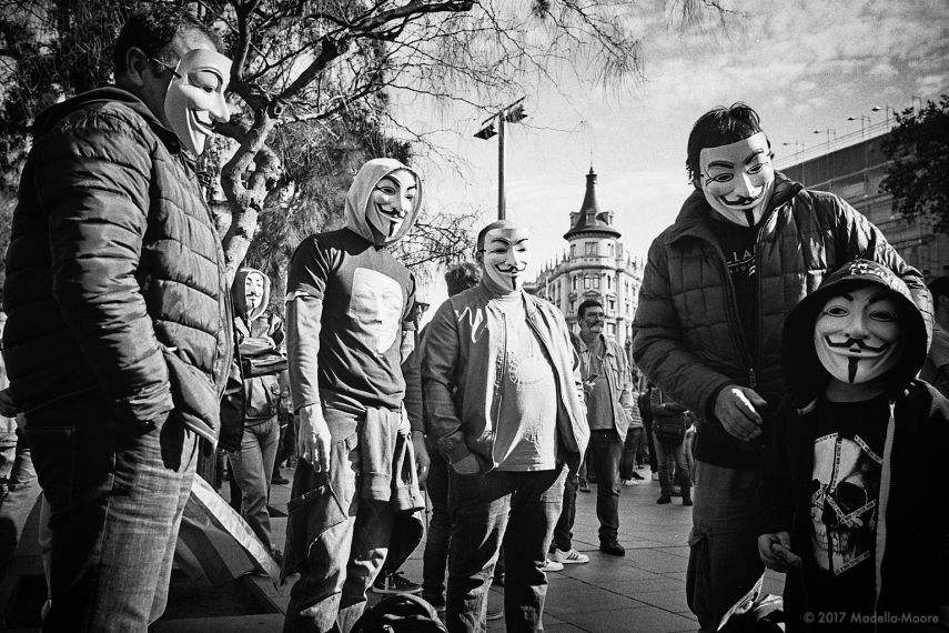 In part because of Puigdemont’s flight, the majority of those detained by the court have been refused bail and are now being held in jail pending trial. This has led to an amplification of the Assemblea/Òmnium campaign to brand those currently on remand as “political prisoners”, with small demonstrations of a few thousand people organised periodically in central Barcelona around this theme. The most radical of these involved the support of Anonymous and a call to cover the entire city in posters: