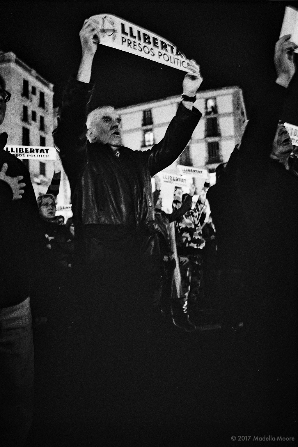 ‘Protest in support of the politicians currently on remand after declaring independence, Plaça Sant Jaume, Barcelona.’