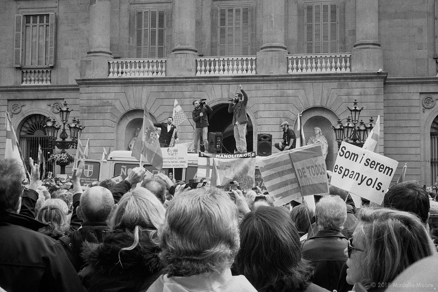 Campaigners speak standing on a van. Tabarnia is a people’s movement, without years of funding from the regional government in the name of “culture”.