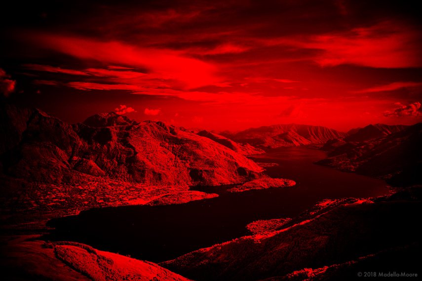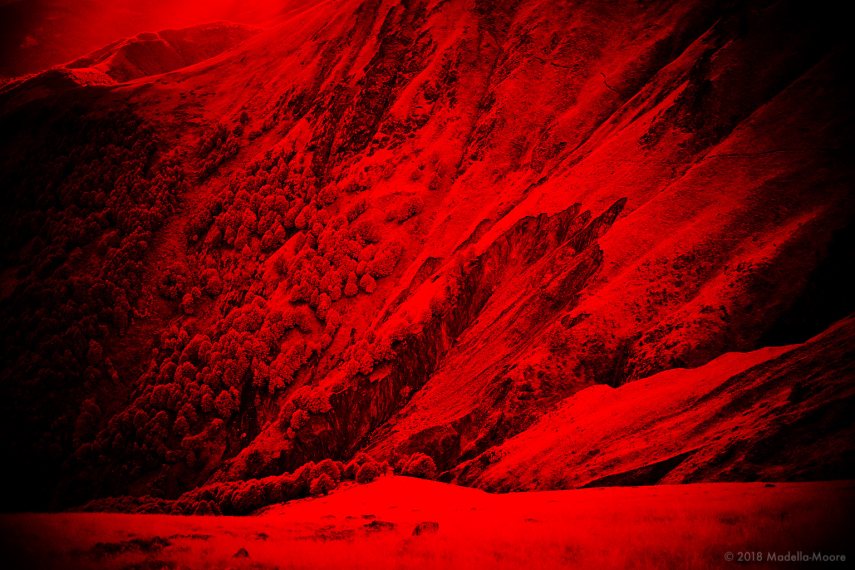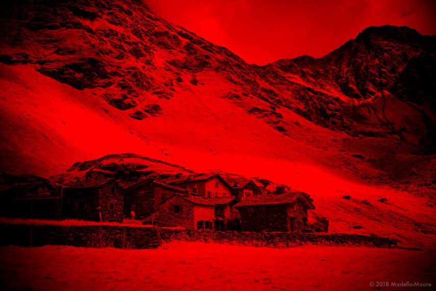 The original intention was to convert the images to black and white, but I really liked the deep red colour of the images straight from camera and so processed them accordingly. The catch is that they are obviously dimmer than full RGB images, and you need a high quality calibrated display to render them with colour and contrast as intended.