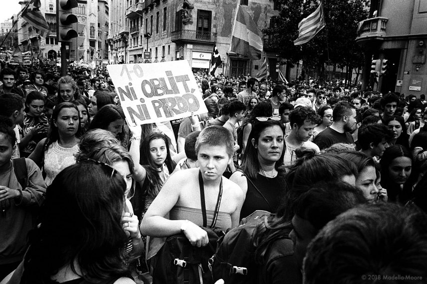 A set of film images from Barcelona, taken around the period of the Diada (the National Day of Catalunya, a focus for nationalism in the region) and the anniversary of the failed 1st October referendum.
