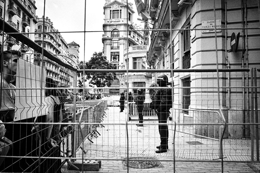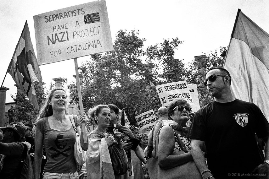 At one point I encountered no less than four different protests fighting for space in Plaça Sant Jaume – reinforcing the stereotypical view of the city as a place where everything is protested but nothing is done. Although not shown here, some of the independence protesters are becoming increasingly violent, and this is finally being acknowledged by the Catalan government – now that some of the protests are also directed at them, following a ban on an independence encampment (tents) in the centre of the city.