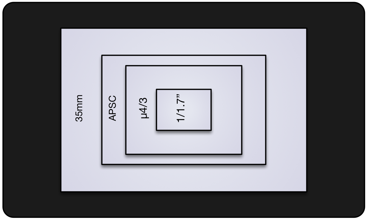 The following diagram compares two cameras with the same lens but different sensor sizes:
