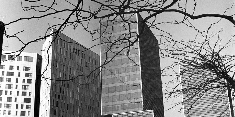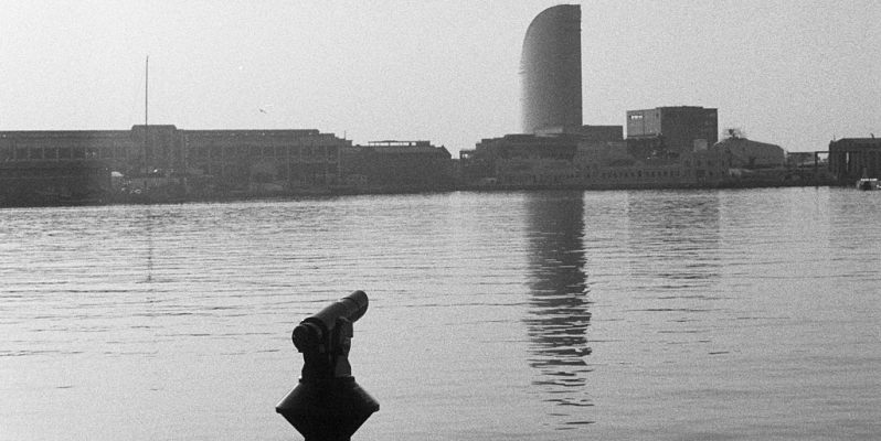 Newly constructed tower blocks, Sant Martí, Barcelona. Minolta X300 with MD50mm f1.4 on Ilford Delta 400 in ID-11 1+1. Sadly it looks as if the Minolta’s shutter is failing (after 30 years of use…), and many of the images on the roll were unusable.