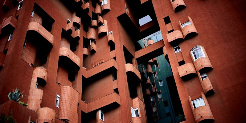 A quick set of images of the Walden 7, an innovative high-density housing block in Sant Just Desvern, on the edge of Barcelona. These were taken on the way back from a walk along the hills at the edge of the city, with a conscious detour to see the block that was just possible before heavy thunderstorms arrived.