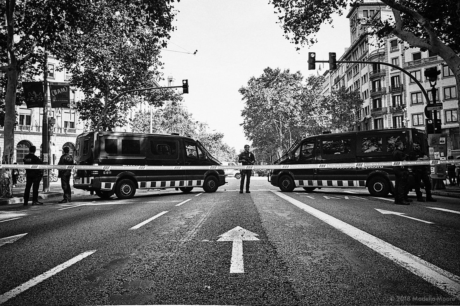 Catalan police cordon off the Gran Via to avoid traffic chaos at an independence protest. The constant protests and disruptions to travel have been a major problem for Barcelona’s reputation as a tourist and conference destination.
