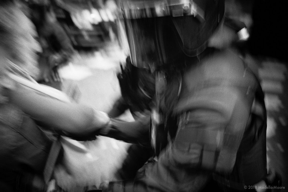 Clashes between police and protesters following the arrest of Carles Puigdemont in Germany. Carrer de València, Barcelona.