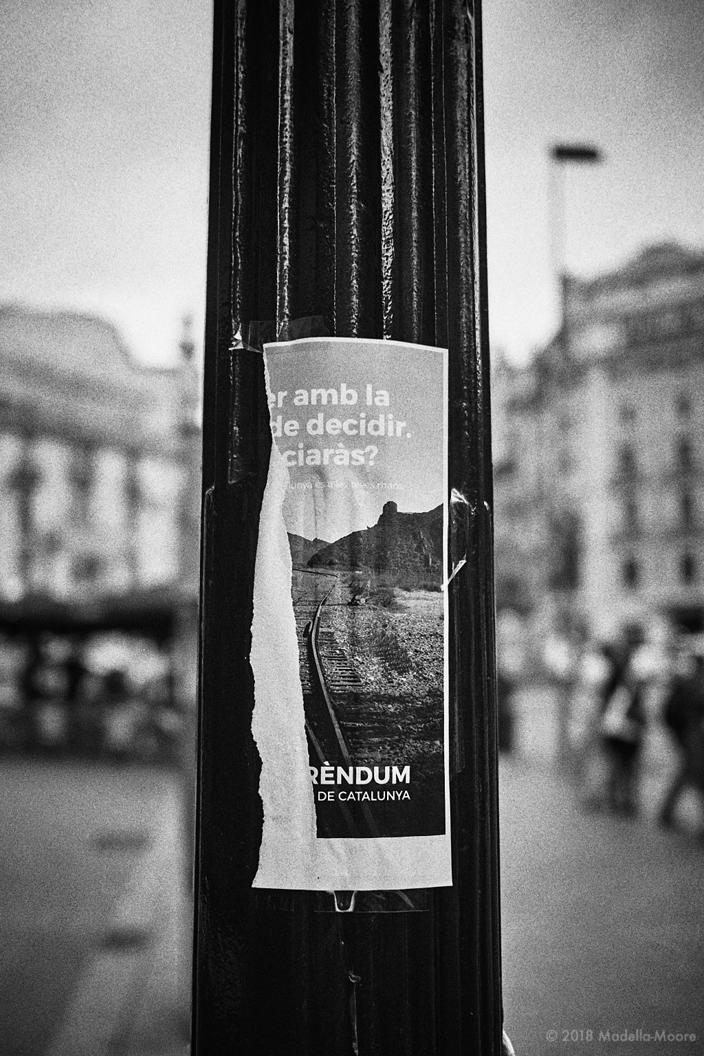Torn poster promoting the Catalan Government’s referendum on independence. The population was evenly split over the question of independence, and many posters were defaced almost as quickly as they were posted.
