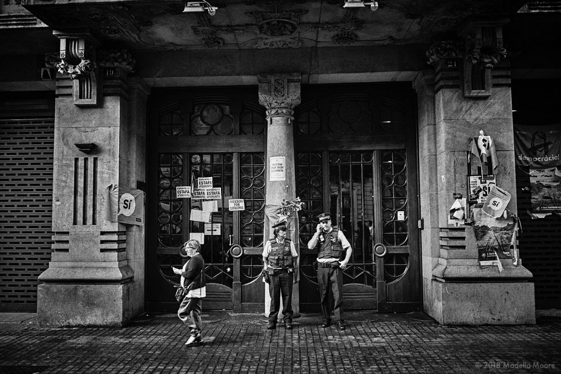 Catalan Police guarding local government offices on La Rambla de Catalunya following the mass action against the Spanish National Police the day before.