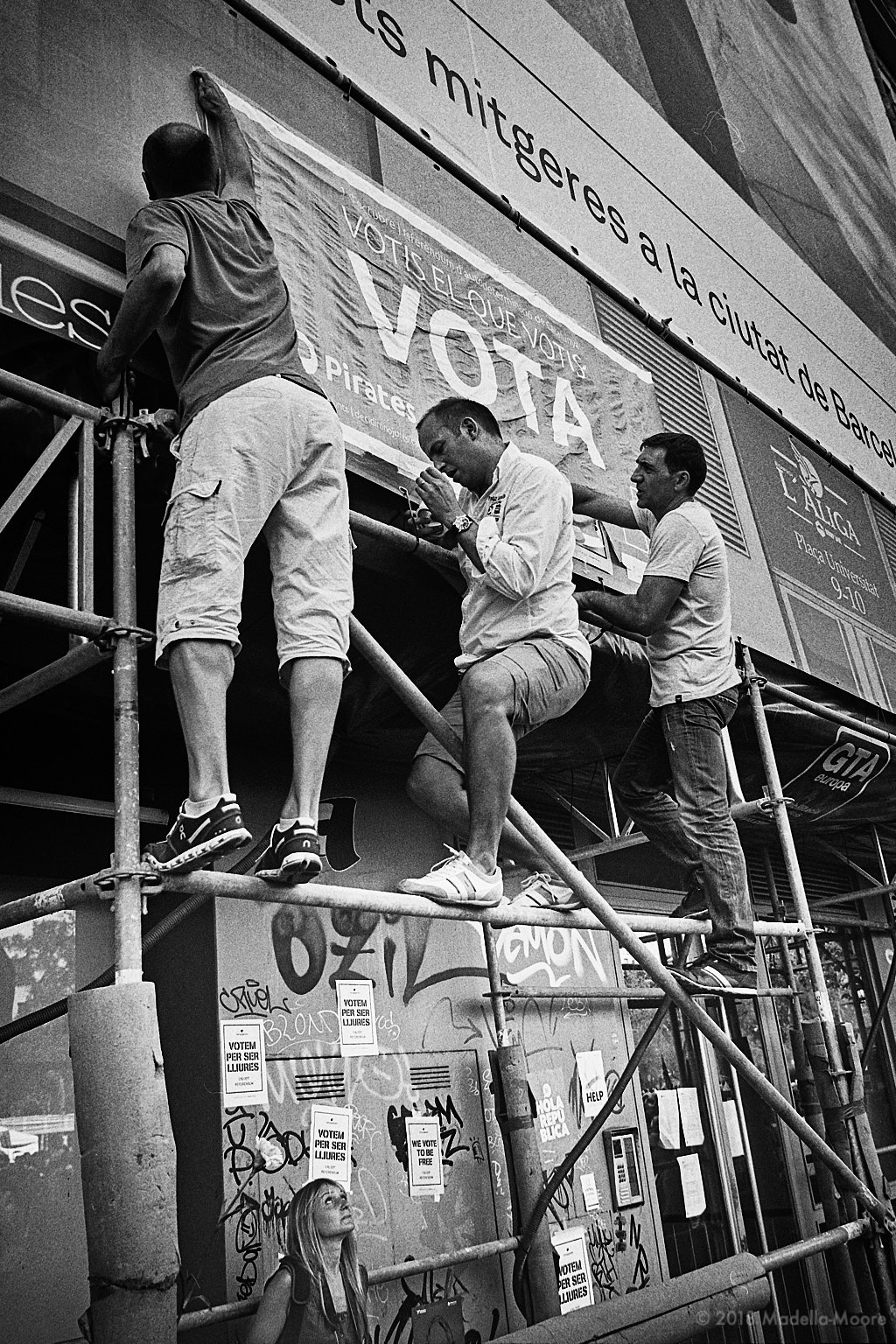 ‘Pirates’Published June 21, 2018 at 1024 × 1536 in State of Independence Protesters scaling scaffolding to put up posters while watched by a woman below. Plaça Universitat, Barcelona. ‹ Return to post Leave a comment Cancel reply Δ This site uses Akismet to reduce spam. Learn how your comment data is processed.