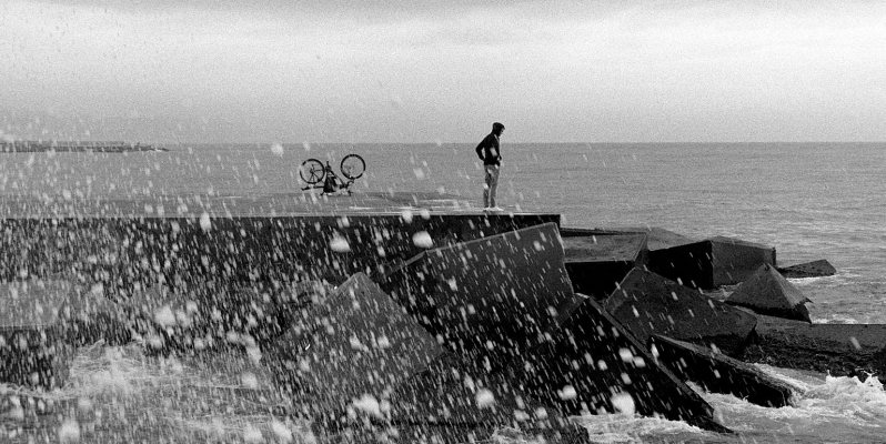 A set of stormy beach scenes, shot along the coast from Badalona to el Masnou, north of Barcelona. These were part of a film shot as part of a processing test for Delta 400 exposed at EI1600 and processed in DD-X 1+4 as if shot at EI 3200. The resulting grain is quite harsh, but also quite fine compared to faster films. The film was scanned using an E-M1.2 with a macro lens, which tends to de-emphasise the grain compared to standalone (non-flatbed) film scanners.