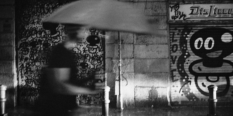 Continuing the series of night-time street photographs in Barcelona. This time I have tried using a 28mm lens, which has proven very difficult. You might expect that the wider angle would mean needing a lower shutter speed, but in practise if you try to get closer to the subject to compensate for the wider field-of-view there is no real advantage. Add to this the practical limitation that my 28mm is a stop slower than my usual lenses, and it is very hard to catch images successfully. With the typical light […]