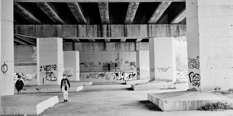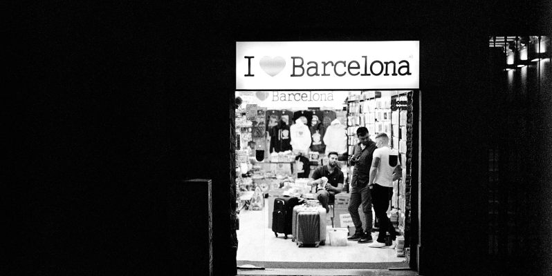 High contrast illuminated shop sign, shot as part of a test sequence for push-processed Ilford Delta 400. It is a clothing shop, not really a plaza in the American sense :-) Shot with the M7 and ZM 2/35. Ilford Delta 400 exposed at EI1600 and processed for EI3200 in Microphen.